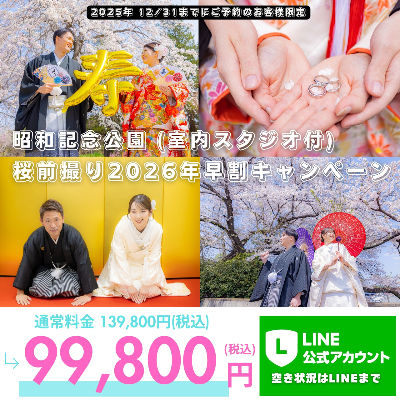 | 2025/12/5 | 2026年度 桜前撮り12/31までのご予約で撮影割引と嬉しい特典が付いてきます♪ |